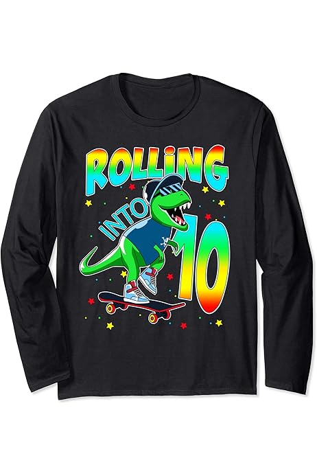 Amazon Com Womens Rolling Into 10 Years Lets Roll Turning 10 Skate Dinosaur V Neck T Shirt Clothing Shoes Jewelry